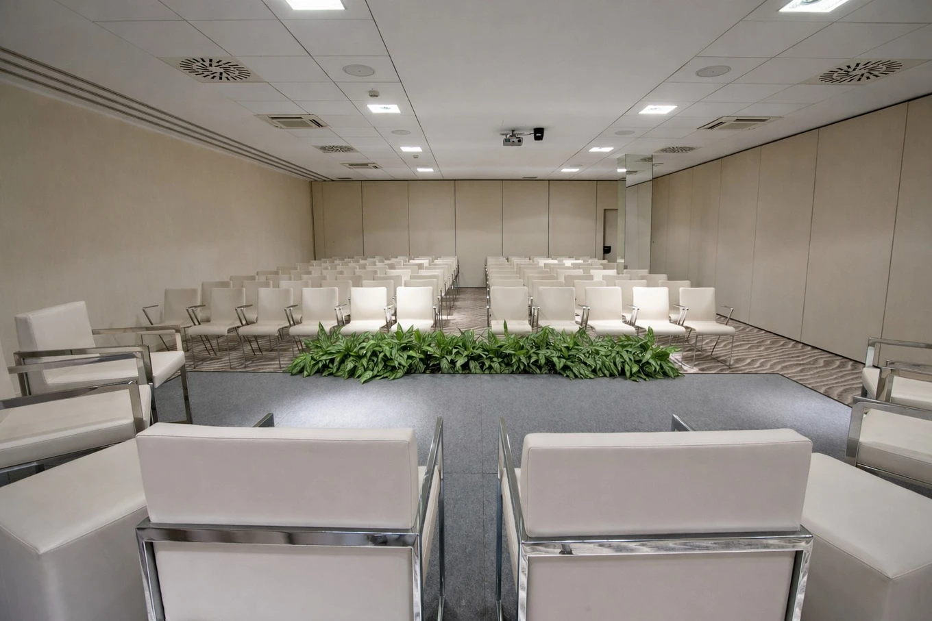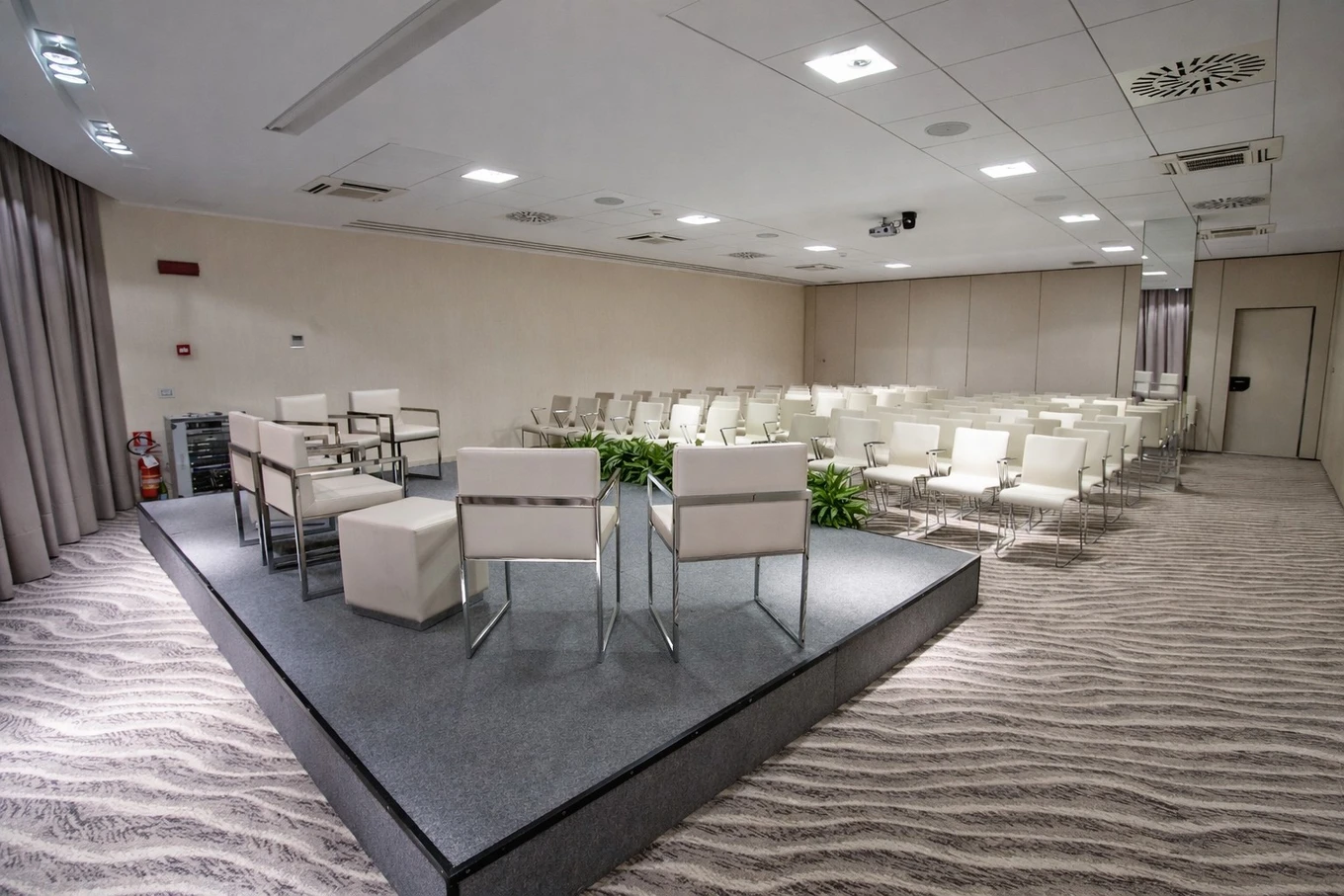 La Sala Levante è uno spazio luminoso e funzionale, con capienza fino a 80 posti. Si estende su 133 mq, con dimensioni di 16,50 x 8,10 metri e altezza di 2,90 metri, ideale per meeting, workshop ed eventi formativi.