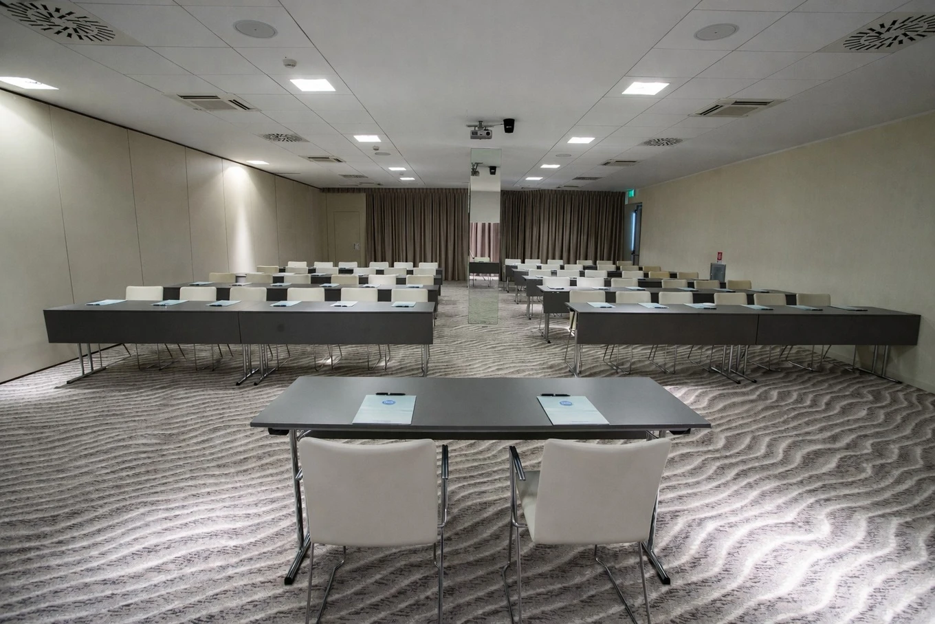 La Sala Scirocco offre un ambiente funzionale e ben organizzato, con capienza fino a 100 posti. Si estende su 137 mq, con dimensioni di 22,50 x 8,10 metri e altezza di 2,90 metri, adatta a eventi e incontri professionali.